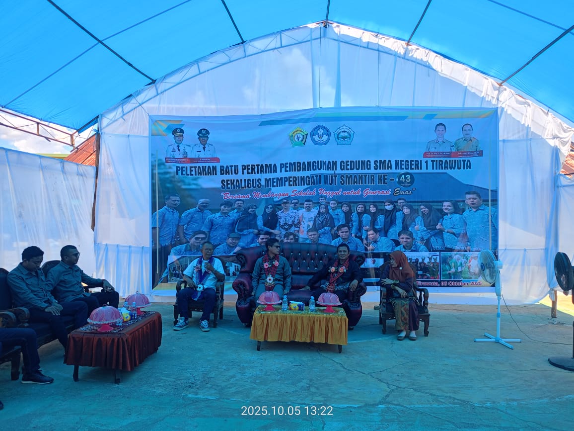 Hal ini ditandai dengan peletakan batu pertama pembangunan dua gedung SMAN 1Tirawuta, pada Minggu (5/10/2025), sekaligus memperingati HUT SMAN 1 Tirawuta ke-43 Tahun 2025, oleh Asisten Tiga Seda Koltim Irwan Kara, S.Sos., MM mewakili Plt Bupati Koltim.