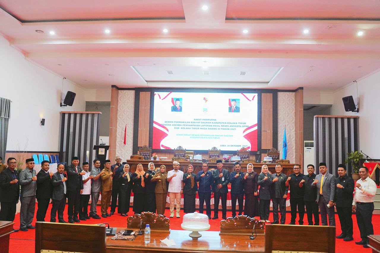 Dewan Perwakilan Rakyat Daerah (DPRD) Kabupaten Kolaka Timur menggelar Rapat Paripurna dengan agenda Penyampaian Laporan Hasil Reses Anggota DPRD Kolaka Timur Masa Sidang III Tahun 2025, yang berlangsung di Ruang Sidang Utama Kantor DPRD Kolaka Timur, Selasa (28/10/2025).