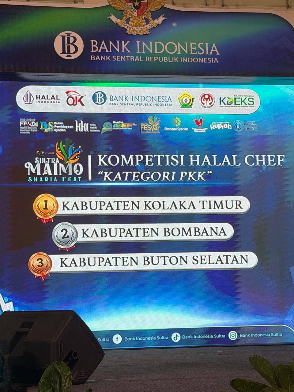 Kompetisi Halal Chef Kategori PKK yang difasilitasi oleh Bank Indonesia Perwakilan Sultea ini dilaksanakan pada Sabtu lalu di Pulau Bokori , dengan menghadirkan peserta dari berbagai kabupaten/kota se-Sultra.