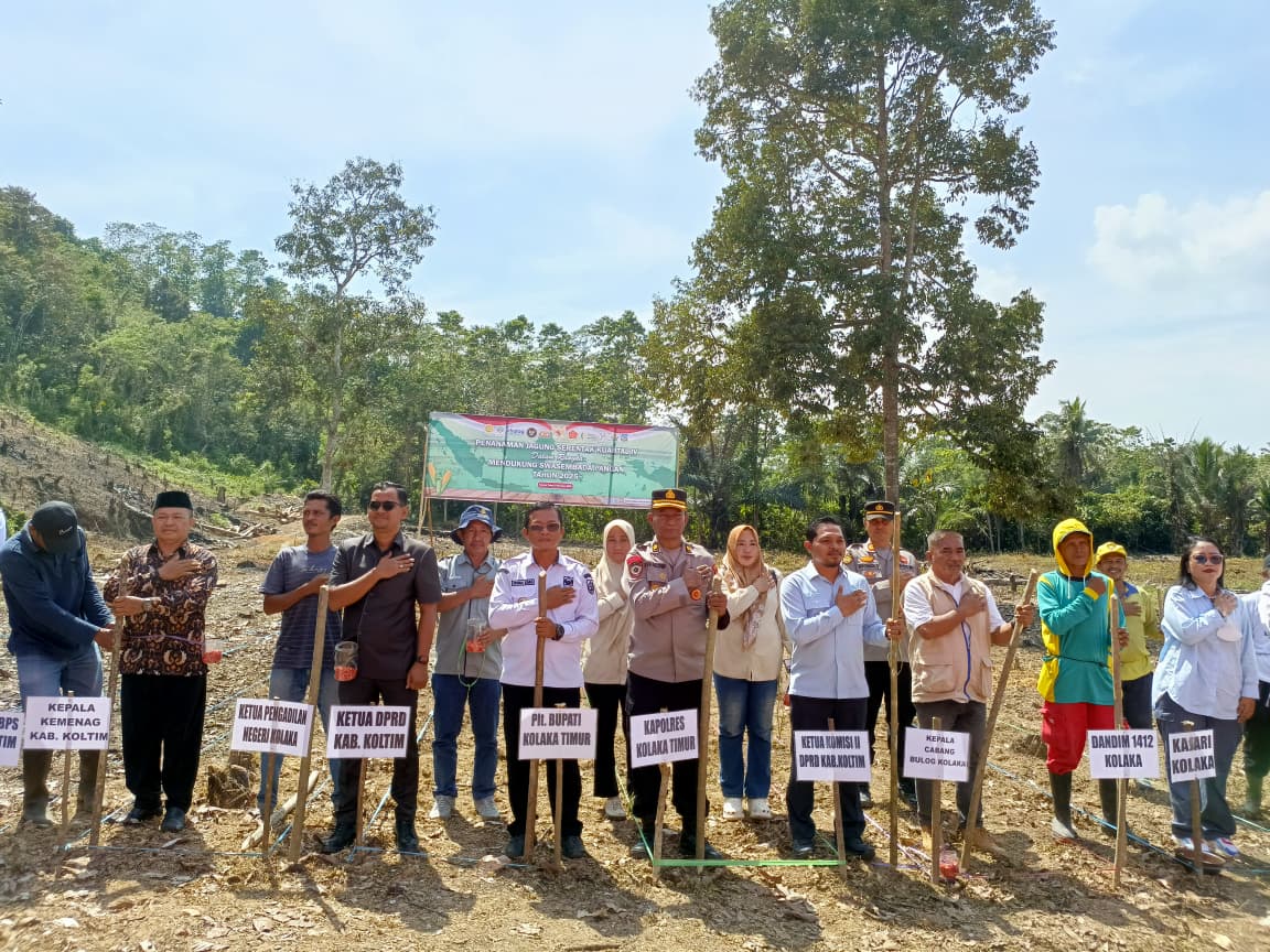 Pemerintah Daerah (Pemda) Kolaka Timur (Koltim) bersama Kepolisian Resort Koltim dan kelompok tan,i melaksanakan kegiatan Tanam Jagung Serentak Kuartal IV Seluruh Indonesia yang dipusatkan di Desa Tawainalu, Kecamatan Tirawuta, pada Rabu (8/10).