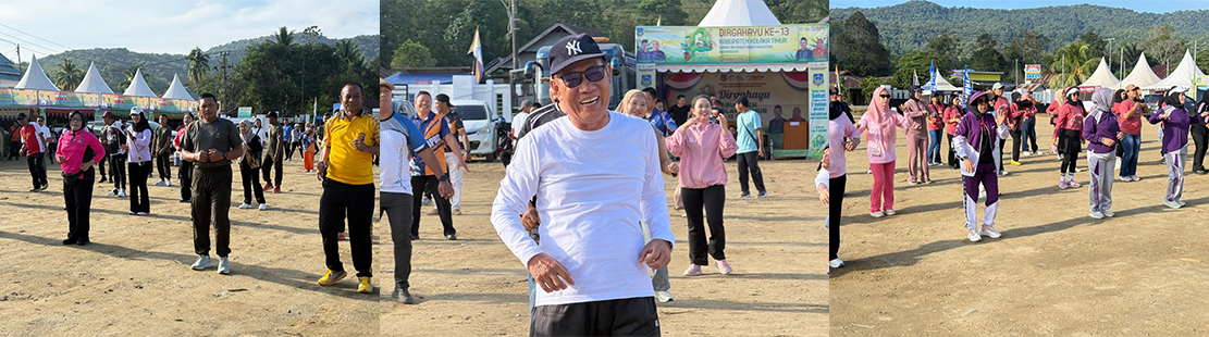 Pemerintah Daerah (Pemda) Kabupaten Kolaka Timur (Koltim) menggelar kegiatan Senam Sehat Gembira sebagai bagian dari rangkaian peringatan Hari Ulang Tahun (HUT) ke-13 Kabupaten Kolaka Timur Tahun 2026 yang mengusung tema “GEMAS Berlanjut dalam Ekosistem Agroindustri”.