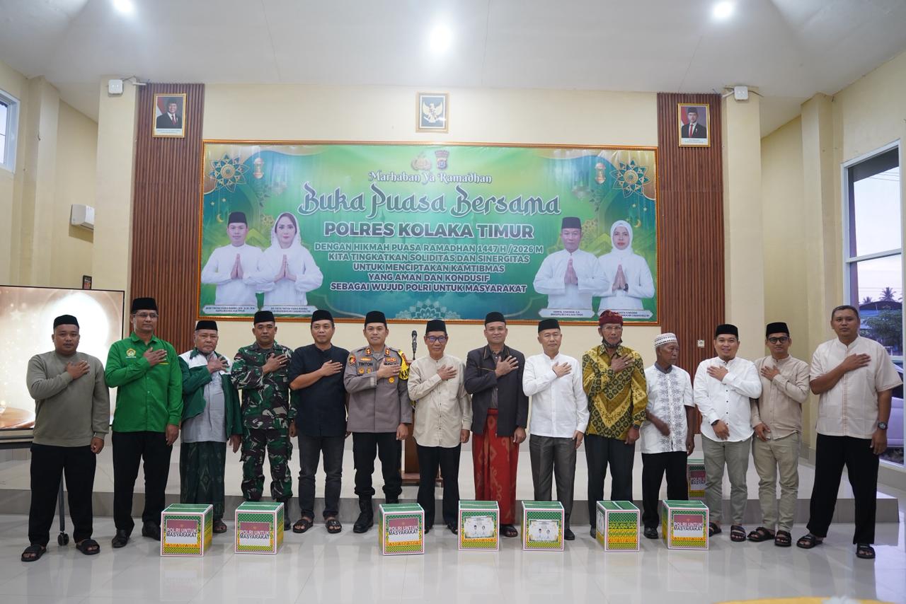 Pemerintah Daerah (Pemda) Kabupaten Kolaka Timur (Koltim) turut menghadiri kegiatan Buka Puasa Bersama di Lingkungan Polres Koltim yang digelar di Aula Tantya Sudhirajati Polres Koltim, Kelurahan Rate-rate, Kecamatan Tirawuta, Senin Sore (16/03/2026).