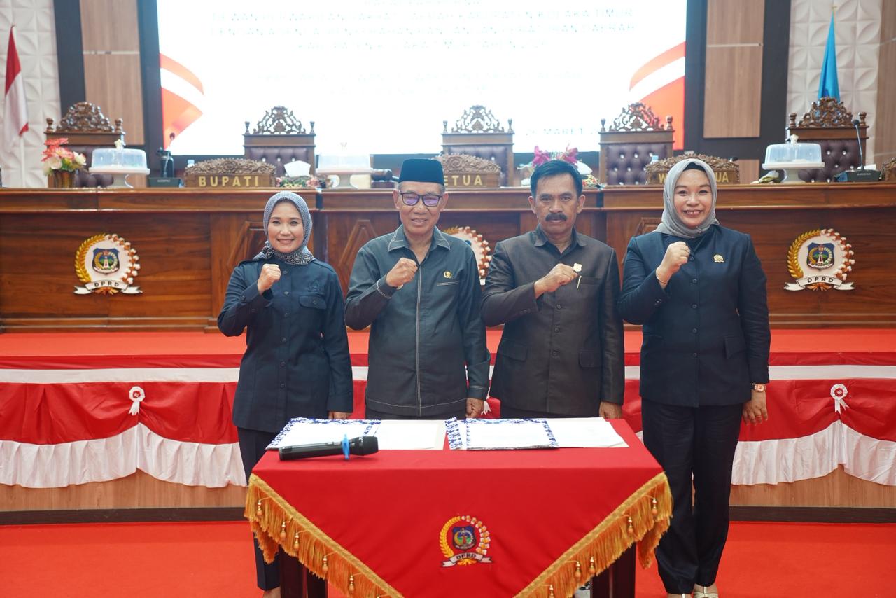 Dalam rapat tersebut dilakukan penyerahan sejumlah Raperda inisiatif sebagai bentuk komitmen bersama antara Pemda dan DPRD Koltim dalam memperkuat regulasi serta mendorong pembangunan daerah yang berkelanjutan di Koltim.