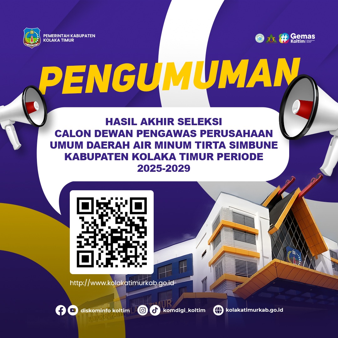 Berikut kami sampaikan Hasil Akhir Seleksi Dewas Perumda Air Minum Tirta Simbune Kolaka Timur dan Dewas Perumda Air Minum Tirta Simbune. Selengkapnya buka link di bawah ini: